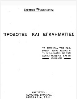 Αναφερόμαστε σε μια έκδοση του “Ριζοσπάστη” το 1944 που έχει τίτλο “Εγκληματίες και προδότες”.