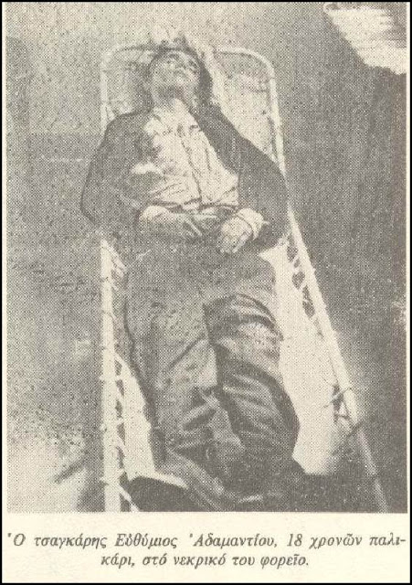 Ακριβώς αυτή τη στιγμή – συμπληρώνει άλλος αυτόπτης μάρτυρας, ο κ. Λαϊνάς –  είδα γνωστούς μυστικούς αστυνομικούς να ρίχνουνε με το πιστόλι από τα παράθυρα των γύρω μεγάρων στο ψαχνό. Στο πιο πυκνό μέρος της διαδήλωσης.
