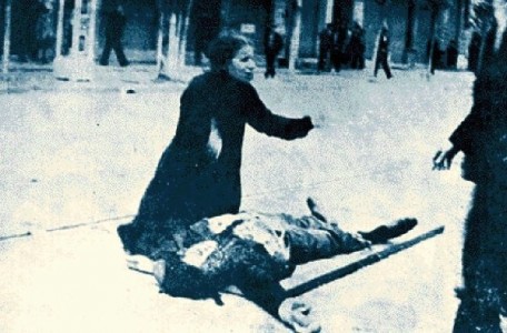 Ο κόσμος σκορπίζει τρέχοντας να σωθεί από τις δολοφονικές σφαίρες των εκτελεστικών αποσπασμάτων.
