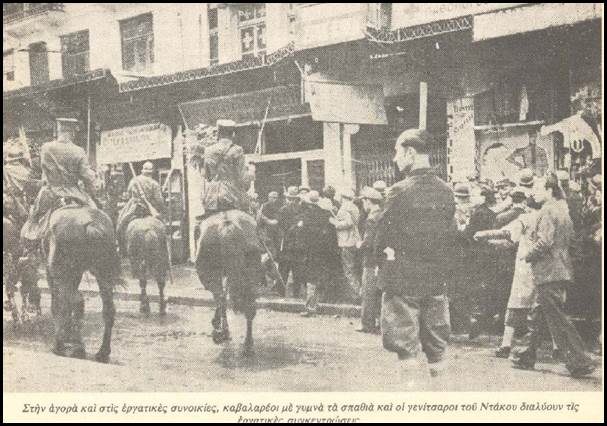 Κι αντί ν’ αρχίσουμε από το καπνεργοστάσιο της Αυστροελληνικής Εταιρείας, που η αστυνομία κάνει επίθεση ενάντια στην απεργιακή φρουρά και τραυματίζει με τους υποκόπανους και με τα γκλομπς δεκάδες εργάτριες κι εργάτες, ας κάνουμε αρχή από κει που το πιστόλι καπνίζει και το όπλο έχει στόχο κορμιά ανθρώπινα.