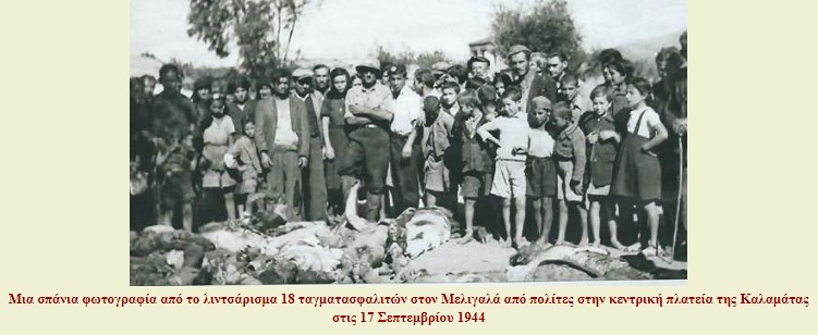 11 Τ. Κωστόπουλος, ό.π., σ. 68-69. Ακόμη και ο ίδιος ο Αρης Βελουχιώτης, καπετάνιος του Γ.Σ του ΕΛΑΣ, που βρισκόταν την περίοδο εκείνη στην Πελοπόννησο, έδωσε ρητές εντολές στην 3η Μεραρχία του ΕΛΑΣ να αποτραπεί το πλήθος από το να λιντσάρει τους άνδρες ίων Ταγμάτων, βλ. Λυμπεράτος, «Τα γερμανικά αντίποινα…», ό.π„ σ. 95.