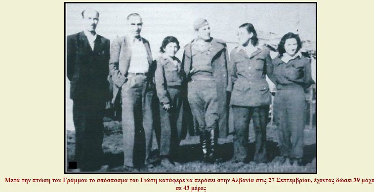 Η πορεία προς τον βορρά ήταν ακόμη πιο δύσκολη και εξαντλητική. Στη Μεσοχώρα, ο Γιώτης και οι αντάρτες αναγκάζονται να δώσουν μάχη για να διασπάσουν την εχθρική διάταξη. Καταδιωκόμενοι από τις κυβερνητικές δυνάμεις κινούνται κατά μήκος της οροσειράς των Τζουμέρκων. Στο Πάπιγκο κυκλώνονται από κυβερνητικές δυνάμεις και έπειτα από μάχη καταφέρνουν να κινηθούν δυτικά με σκοπό να περάσουν τα σύνορα από τη Μουργκάνα. Τελικά, στις 27 Σεπτεμβρίου καταφέρνουν να περάσουν στην Αλβανία. Η αποστολή τους κράτησε 43 μέρες και χρειάστηκε να δώσουν 39 μάχες.10