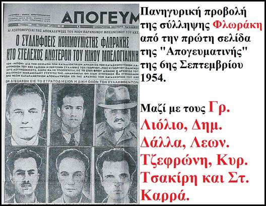 Ο Φλωράκης παραμένει στα κρατητήρια της Ασφάλειας μέχρι τον Νοέμβρη του 1954 και στη συνέχεια μετάγεται στις φυλακές της Κέρκυρας. Την άνοιξη του 1955 περνάει από δύο δίκες στη Λάρισα.