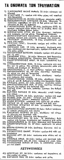 Δεκάδες οι βαριά τραυματισμένοι. Πολλά τα ανοιγμένα κεφάλια, ακόμα και παιδιών. Κάποιος πολίτης κρατά το σκισμένο μάγουλό του που κρέμεται. Κάποιος άλλος, χάνει το μάτι του όταν δέχεται βλήμα στο κεφάλι. Τα γύρω νοσοκομεία δεν προλαβαίνουν να δίνουν τις πρώτες βοήθειες και στους πιο ελαφρά τραυματισμένους και σε όσους δεν μπορούν να αναπνεύσουν, που επίσης είναι εκατοντάδες. Το αίμα βάφει τα πεζοδρόμια. Αργά το βράδυ η μανία των δυνάμεων της αστυνομίας κοπάζει… Η πόλη μοιάζει βομβαρδισμένη.