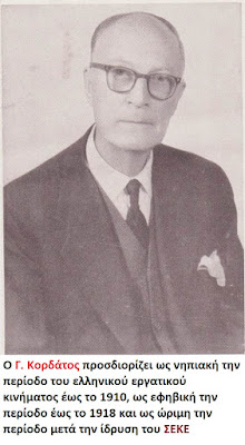 Ο Κορδάτος κάνοντας απογραφή της πορείας του ελληνικού εργατικού κινήματος προσδιορίζει ως νηπιακή την περίοδο έως το 1910, ως εφηβική την περίοδο έως το 1918 και ως ώριμη την περίοδο μετά την ίδρυση του ΣΕΚΕ, οπότε άρχισε να «παίζει τον ιστορικό του ρόλο».