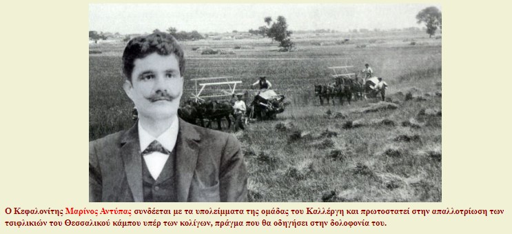 Οταν όμως ο Μαρίνος Αντύπας σκοτώνεται, οι αγροτικοί σύνδεσμοι ξεφυτρώνουν σαν τα μανιτάρια (με κυριότερο τον Αγροτικό Σύνδεσμο Καρδίτσας που ιδρύθηκε το 1906), ενώ το 1908 ιδρύεται το Εργατικό Κέντρο Βόλου, το πρώτο στην Ελλάδα, το οποίο και καθοδηγεί ιδεολογικά τον αγώνα των κολίγων της Θεσσαλίας.