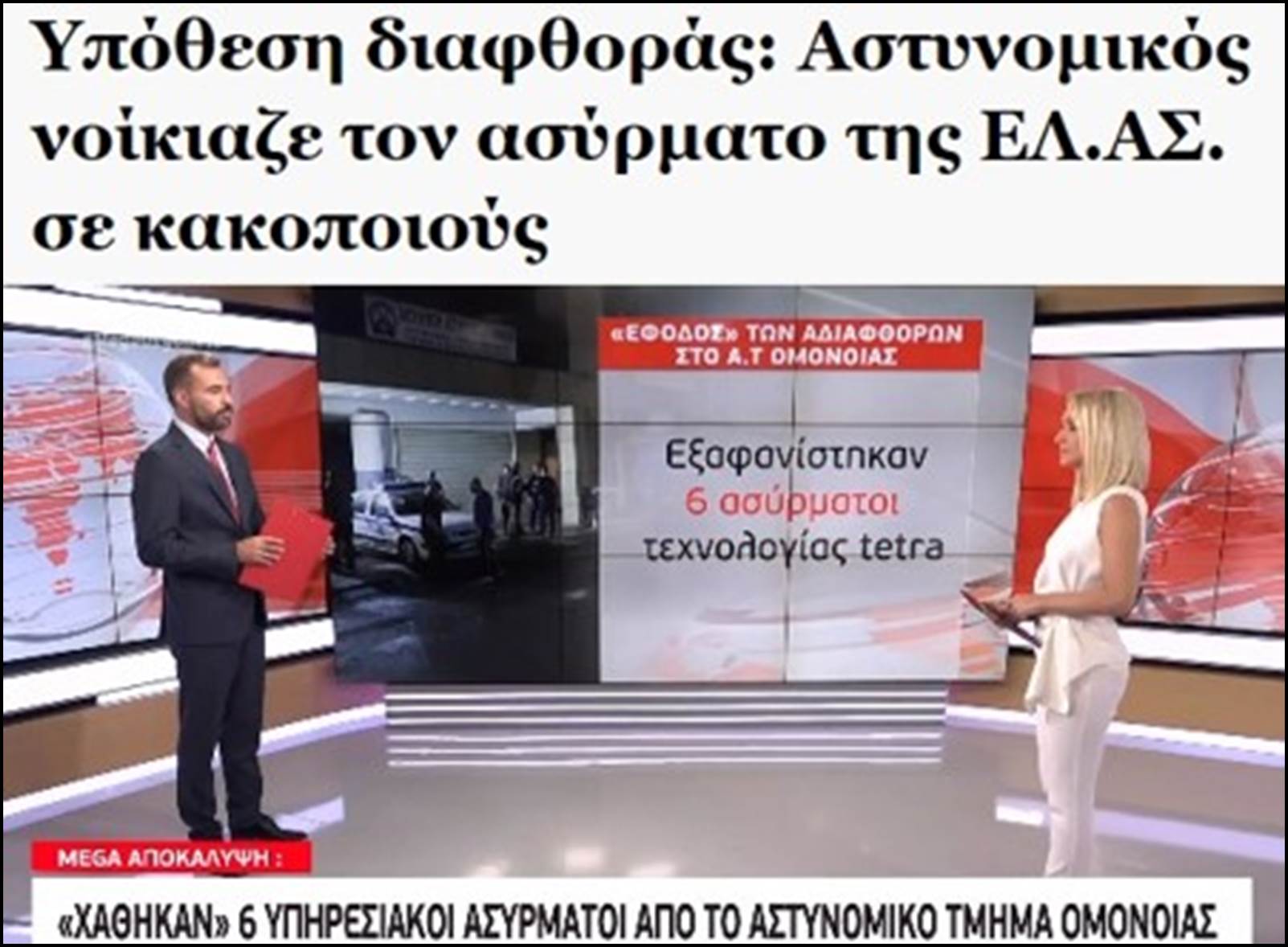 Εδώ να προσθέσουμε ότι τον Νοέμβρη του 2020 είχε αποκαλυφθεί ότι εξαφανίστηκαν έξι ασύρματοι τεχνολογίας tetra, απ’ το κακόφημο Αστυνομικό Τμήμα Ομονοίας. Σήμερα πάλι έρχεται στην δημοσιότητα ότι συνελήφθει ένας βαθμοφόρος μπάτσος ο οποίος «νοίκιαζε» τον υπηρεσιακό του ασύρματο σε κακοποιούς.