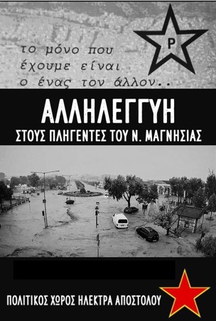 Στην δικιά τους Ελλάδα είναι οι καπιταλιστές, ιδιοκτήτες κατασκευαστικών ομίλων που ήδη χαμογελούν χαρούμενοι για το δημόσιο χρήμα που θα ενθυλακώσουν με απευθείας αναθέσεις για να αποκαταστήσουν καταστροφές που έγιναν σε δημόσια κτίρια. Το είπε άλλωστε ξεκάθαρα σήμερα από την Καρδίτσα ο Μητσοτάκης: «Θα πρέπει τώρα να επιστρατεύσουμε ουσιαστικά όλες τις κατασκευαστικές εταιρείες της χώρας, όλες τις μεγάλες, να μοιράσουμε τα έργα τα οποία πρέπει να γίνουν και γρήγορα να κινηθούμε».