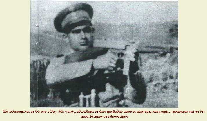 Ο Σπύρος Παπαγεωργίου, στενός συνεργάτης του Γεωργίου Γρίβα, αναφέρει: «Είναι αλήθεια ότι παρά το γεγονός ότι η X διαχώρισε τη θέση της από τη δράση του Μαγγανά του είχε παράσχει πολιτική και νομική στήριξη».17
