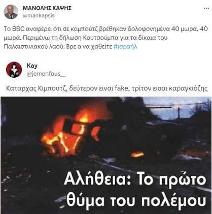 Τα παραπάνω περιλαμβανόταν σε κείμενο που είχαμε δημοσιεύσει στο μπλοκ μας τον Απρίλη του 2022. Το ανακαλέσαμε στην μνήμη μας με αφορμή το εύστοχο δημοσίευμα της ιστοσελίδας 902 που τιτλοφορείται “Καταρρέουν άλλα δύο fake news που κυκλοφόρησαν από ισραηλινά και δυτικά ΜΜΕ