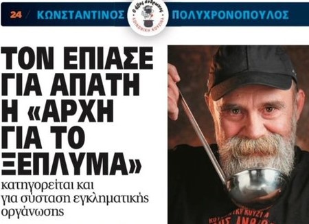 Και συμπληρώνει το δημοσίευμα: Ποιος θα μπορούσε ποτέ να φανταστεί ότι ο αυτός ο τροφοδότης κάθε πεινασμένου που εμφανιζόταν να συντρέχει αυτοβούλως και αφιλοκερδώς τους “μακαρίους πεινώντες” θα ήταν ο ίδιος ένας κατά κυριολεξίαν “αλλος άνθρωπος”. Ο εμπνευστής και η ψυχή της δράσης “Κοινωνική Κουζίνα – Ο Αλλος Ανθρωπος” για περισσότερο από μια δεκαετία είχε δημιουργήσει την εντύπωση ότι είναι ένας καλοκάγαθος λαϊκός τύπος, ο οποίος αποφάσισε να απαλύνει τις τραγικές συνέπειες του έσχατου ξεπεσμού και της κοινωνικής περιθωριοποίησης, προσφέροντας ένα πιάτο φαγητό σε όποιον το είχε ανάγκη. -είτε στη δομή της Μόριας, είτε στα πλημμυρισμένα χωριά της Θεσσαλίας πιο πρόσφατα.
