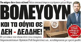 Λεπτομέρειες: Η γυναίκα του ιδιοκτήτη της εταιρείας δημοσκοπήσεων Opinion Poll, Στυλιανή Πιτσαρή, διορίστηκε από την ΝΔ ως … κλαδάρχισσα (διευθύντρια του κλάδου Περιβάλλοντος, Αδειοδοτήσεων και Κλιματικής Αλλαγής στον ΔΕΔΔΗΕ) στην ΔΕΗ με τρελό μισθό. Από την άλλη πλευρά, μια σειρά “έγκυροι” δημοσιολόγοι (Ευαγγελάτος, Χατζηνικολάου, Μαλέλης κλπ) τώρα και σαν “καθηγητές” εκπαιδευτικών μαγαζιών που θα φέρουν τον τίτλο ΑΕΙ, θα ανέβουν οι “μετοχές” τους.