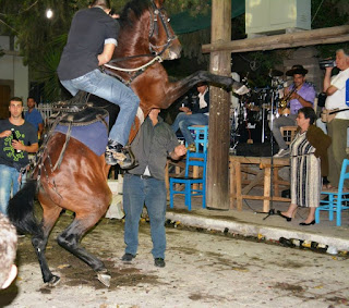 Στην συνέχεια γυρνάν έφιππες παρέες στο χωριό, με τους οργανοπαίχτες μπροστά, σε μια μοναδική εικόνα ανθρώπων και αλόγων.