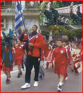 Δεν θα είναι πρωτοφανής η εμπειρία για τον Γιάννη. Μια από τις παλαιότερες φωτογραφίες του από την Αθήνα τον δείχνει να ανεμίζει την ελληνική σημαία, γίγαντας μεταξύ νάνων, σε σχολική παρέλαση όταν ήταν το πολύ 15 ετών…