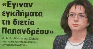 Διαγραμμένη απ’ την κοινοβουλευτική ομάδα του ΠΑΣΟΚ και αφού δεν έχει πολιτική στέγη να πολιτευτεί στις βουλευτικές εκλογές έδειχνε με τις συνεντεύξεις της να αναζητά συγχωροχάρτι αφού με την ψήφο της στην βουλή στήριξε τόσα χρόνια εγκληματικές πολιτικές για τον λαό, και ίσως ευελπιστώντας ότι θα μπορούσε να αξιοποιηθεί σαν «εξωκοινοβουλευτική προσωπικότητα» από μια μελλοντική κυβέρνηση.