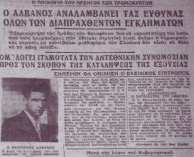Χωρίς να δηλώσει μετάνοια ή να ζητήσει έλεος, ο Αλβανός στάθηκε ακλόνητος στα πιστεύω του: «Εγώ πάλι τονίζω ότι έμεινα πιστός στα δημοκρατικά ιδανικά που πιστεύω και δούλεψα μέχρι σήμερα γι’ αυτό. Από την αρχή που μπήκα στον αγώνα δεν αγωνίστηκα για το ατομικό μου απλώς συμφέρον, αλλά για το γενικό, για την καλυτέρευση του γενικού συμφέροντος για να καλυτερέψει και το ατομικό. Φιλοτομαριστής δεν είμαι γιατί το απέδειξα στις τόσες κακουχίες και τόσα βάσανα. Εγώ τράβηξα αποφασιστικά γι’ αυτό που πιστεύω για το λαό».