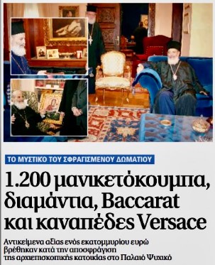 Ξεσφράγισαν το σφραγισμένο ιδιαίτερο δωμάτιο του αρχιεπισκόπου Χριστόδουλου στο Παλαιό Ψυχικό και βρήκαν πάρα πολλά αντικείμενα μεγάλης χρηματικής αξίας. Τα κατέγραψε επιτροπή την οποία αποτελούσαν δικαστικές αρχές, ο διευθυντής της αστυνομίας, ο εκπρόσωπος της εφορίας, ένας συμβολαιογράφος, ο αρχιερατικός επίτροπος Θωμάς Χρυσικός, ο πρώην αρχιερατικός επίτροπος Θωμάς Συνοδινός, ο γνωστός Βρεσθένης Θεόκλητος Κουμαριανός, και δύο διάκονοι του Χριστόδουλου.