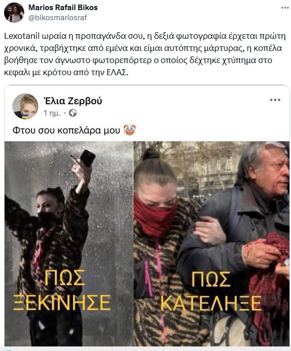 Και σαν να μην έφτανε αυτό ακολούθησε και το απολαυστικό “χαστούκι” που έριξε ο Νίκος Πλακιάς σε μια σειρά τρολάκια του διαδικτύου σαν την Νάντια Αλεξίου, την Ελια Ζερβού και την γνωστή δημοσιολόγο Λίνα Κλείτου, που έκαναν σημαία την είδηση ότι η εικονιζόμενη κοπελιά είναι “γνωστή 55χρονη Γερμανίδα ακτιβίστρια”.