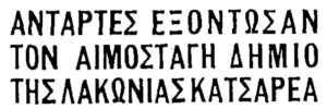 Το πρώτο είναι η απεύθυνση του νέου αρχηγού της ΕΑΟΚ, Κυριάκου Κυριακόγκωνα, προς τον «Λαό της Λακωνίας». Το κείμενο συντάχθηκε στο Γύθειο στις 4 Σεπτεμβρίου του 1947.