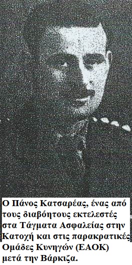 Σαν σήμερα 22/03/1947 –κατά μια άλλη εκδοχή στις 20/3/47- τμήμα του Δημοκρατικού Στρατού Ελλάδας με επικεφαλής τον Τάκη Γεωργόπουλο  εξοντώνουν ένα από τα μεγαλύτερα καθάρματα  που έδρασαν στον νομό Λακωνίας. Τον Πάνο Κατσαρέα. Επρόκειτο για έναν απ’ τους πιο διαβόητους εκτελεστές των Ταγμάτων Ασφαλείας στην Κατοχή και τον άνθρωπο που ίδρυσε τις παρακρατικές Εθνικές Αντικομμουνιστικές Ομάδες Κυνηγών  (ΕΑΟΚ), που  καταδυνάστευαν τον άμαχο πληθυσμό της Λακωνίας.