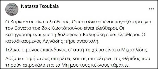 Στο ίδιο θέμα αναφερόταν με σκωπτικό τρόπο και η καθηγήτρια εγκληματολογίας στο Université Paris-Saclayμ, Νατάσα Τσουκαλά: