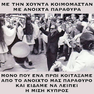 Πίστευαν πως ο Μακάριος ήταν κομμουνιστής! Αρχιερέας κομμουνιστής, εντάξει. Αλλά εδώ το μέλημα τους ήταν να μην ακούσουμε Θεοδωράκη! Τόσο μαλάκες! Φυσικά κατάλαβαν πως δεν τους παίρνει άλλο, πως αν δώσουν όπλα θα τα βάζαμε στους πισινούς τους και την κοπάνησαν.
