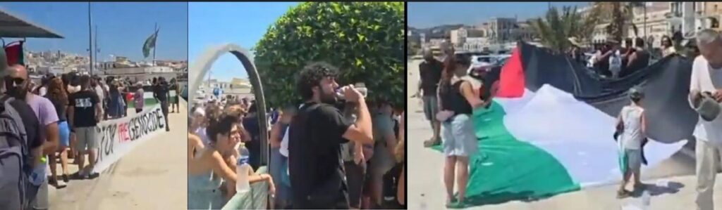 Σήμερα Τρίτη 22 Ιούλη, οι κάτοικοι της Σύρου βγήκαν στους δρόμους της Ερμούπολης και διαδήλωσαν απέναντι στην κραυγαλέα πρόκληση: την άφιξη του ισραηλινού κρουαζιερόπλοιου Crown Iris στο λιμάνι του νησιού, την ίδια στιγμή που οι βόμβες και τα πυρηνικά όπλα θερίζουν τη Λωρίδα της Γάζας. Σε μια Ελλάδα που συντάσσεται όλο και πιο απροκάλυπτα με το κράτος-δολοφόνο του Ισραήλ, οι φωνές που ακούστηκαν στην Πλατεία Μιαούλη σήμερα ήταν φωνές αγώνα, ταξικής μνήμης και διεθνιστικής ευθύνης.