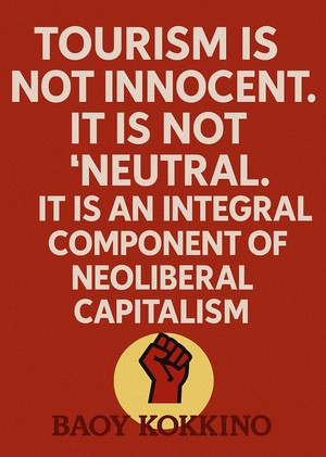 Ο τουρισμός δεν είναι αθώος. Δεν είναι «ουδέτερος». Είναι δομικό στοιχείο του νεοφιλελεύθερου καπιταλισμού. Χρησιμοποιεί τα νησιά και τις τοπικές κοινωνίες σαν βιτρίνα ειρήνης, ενώ από πίσω χτίζει γεωπολιτικά ντιλ με αίμα και φωτιά. Ο σημερινός Ισραηλινός επισκέπτης δεν είναι “ουδέτερος ταξιδιώτης”: είναι εκπρόσωπος ενός καθεστώτος κατοχής και γενοκτονίας. (Αναφερόμαστε στην συντριπτική πλειοψηφία του 82% του Ισραηλινού λαού που εμφανίζεται υπέρ της εθνοκάθαρσης στη Γάζα).