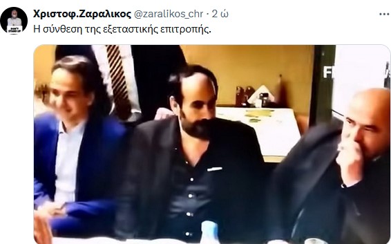 Δε θα πω για την εγκληματική οργάνωση της ΝΔ, που τυραννά τη Μπανανία μας, γιατί ό,τι κι αν γράψω, είναι λίγο. Παραπέμπω στην ανάρτηση του προφήτη Ζαραλίκου, ο οποίος έχει φωτογραφία, Μητσοτάκη – Φραπέ – Χασάπη γράφοντας «Η σύνθεση της εξεταστικής επιτροπής».