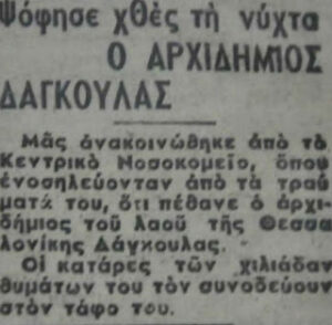 «Η δράση του Δάγκουλα, ο οποίος μαζί με τους άνδρες του είχε επιφορτιστεί από τους Γερμανούς  και καθήκοντα εκτελεστικού αποσπάσματος, περιλάμβανε δεκάδες δολοφονίες και εκτελέσεις  πολιτών ανεξαρτήτως πολιτικών πεποιθήσεων.
