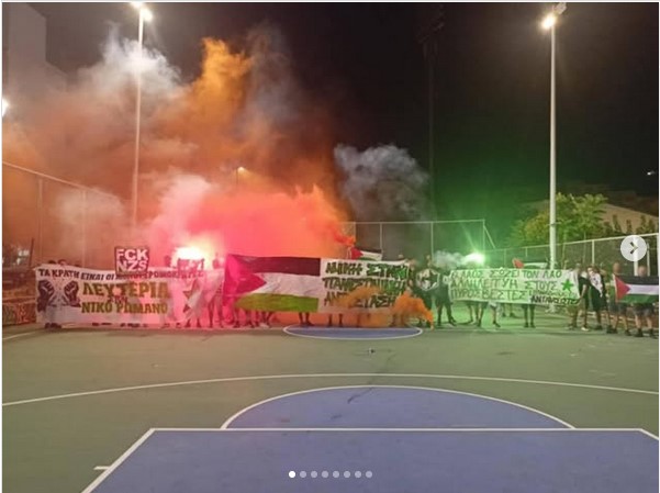Δεν θα επιτρέψουμε τα γήπεδα και ο αθλητισμός να χρησιμοποιούνται για το ξέπλυμα της ισραηλινής θηριωδίας αλλά ούτε και να κρύβονται πίσω από το δόγμα No Politica όπου καλλιεργεί και θρέφει τον φασισμό στις κερκίδες,ανοίγοντας τον δρόμο στην ανοχή της αδικίας και της εκμετάλλευσης.