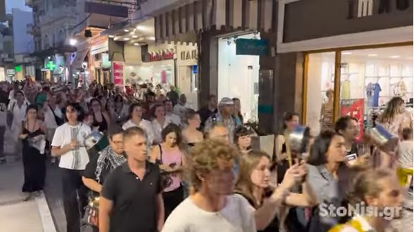 Στη συνέχεια πραγματοποιήθηκε πορεία στην κεντρικής αγορά και στην παραλία της πόλης, όπου πλήθος παρευρισκομένων ανταποκρινόταν συγκινητικά, με χειροκρότημα και συμμετοχή στα συνθήματα των διαδηλωτών.
