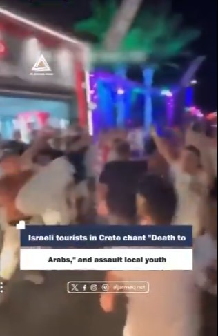 Σε βίντεο που ανάρτησε ο Ιάσονας Αποστολόπουλος στον λογαριασμό του στο Χ, επιβάτες του ισραηλινού κρουαζιερόπλοιου «Crown Iris» καταγράφονται να φωνάζουν «Θάνατος στους Άραβες» από το κατάστρωμα, ενώ το πλοίο βρισκόταν στο λιμάνι της Κρήτης. Η ρατσιστική αυτή κραυγή μίσους ακούγεται ξεκάθαρα, κι όμως κανένας από αυτούς δεν συνελήφθη ούτε αντιμετώπισε τις συνέπειες του αντιρατσιστικού νόμου.