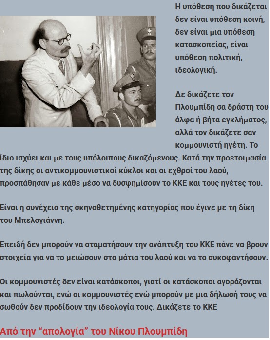 24 Ιούλη 1953 στο διαρκές στρατοδικείο Αθηνών ξεκινάει η δίκη του Νίκου Πλουμπίδη