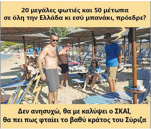 Στην εποχή της πυρκαγιάς και της στάχτης, η διακοπή διακοπών του πρωθυπουργού αναγορεύεται σε «ηρωική πράξη». Οι τίτλοι έπεφταν βροχή: