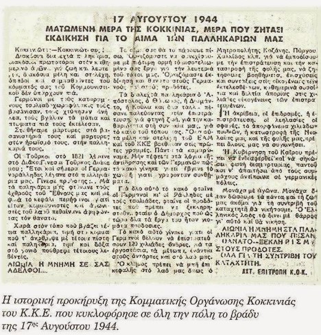 Φέρνοντας στην μνήμη μας όσα έγιναν στις 17 Αυγούστου του 1944 στο μπλόκο της Κοκκινιάς, είναι καλό είναι να θυμηθούμε τον τρόπο με τον οποίο το αστικό κράτος αντιμετώπισε τα καθάρματα που συνεργάστηκαν με τον κατακτητή είτε ως κουκουλοφόροι είτε ως ταγματασφαλίτες στο μπλόκο της Κοκκινιάς.