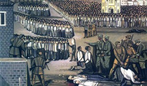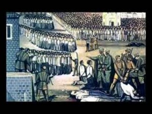 Οι κουκουλοφόροι σαν φίδια σέρνονται μέσα στο πλήθος και διαλέγουν… κι ο δήμιος εκτελεί. Μέχρι να τους πάνε στον τόπο της εκτέλεσης τους βασανίζουν απάνθρωπα για να προδώσουν …