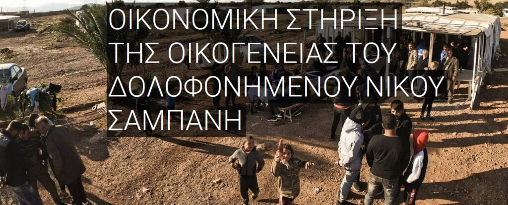 Μας ενημερώνουν ότι υπάρχει ένα κάλεσμα που απευθύνεται “στον κόσμο του αγώνα, στον κόσμο της αλληλεγγύης να στηρίξει οικονομικά την οικογένεια του Νίκου Σαμπάνη και τις ανάγκες της”.