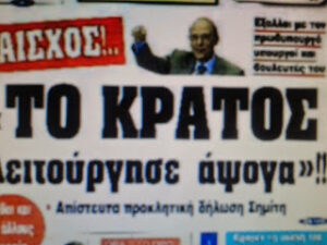 Στην ίσια κατεύθυνση και ο τότε πρωθυπουργός Κ. Σημίτης εκτίμησε ότι ο κρατικός μηχανισμός λειτούργησε άψογα ενώ λίγες μέρες αργότερα από την τραγωδία του «Σαμίνα» κάνει εκείνη την εμβληματική δήλωση: «Αυτή είναι η Ελλάδα»…  (Η δική του Ελλάδα δηλαδή που παραδίδει τον Οτσαλάν στους Τούρκους έχοντας έναν πρωθυπουργό ο οποίος ήταν τροχονόμος στην λεωφόρο της μίζας).