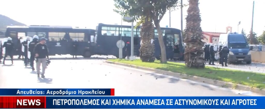 Σε μια ακόμη απόδειξη της ωμής καταστολής που επιφυλάσσει η κυβέρνηση Μητσοτάκη στους αγρότες και κτηνοτρόφους, οι δυνάμεις καταστολής της ΕΛ.ΑΣ. προέβησαν σε ρίψη χημικών και κρότου λάμψης εναντίον δεκάδων αγροτών που προσπαθούσαν να φτάσουν στο αεροδρόμιο «Νίκος Καζαντζάκης» του Ηρακλείου, στο πλαίσιο του παγκρήτιου συλλαλητηρίου.
