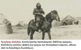 Ωστόσο, πίσω από το φως των καμερών κρύβεται μια βαθύτερη ιστορική σύνδεση. Ο ίδιος άνθρωπος, πριν από χρόνια, υπερασπίστηκε με πάθος τον Γρηγόρη Σούρλα, τον «καπετάνιο της Θεσσαλίας», μια φιγούρα που για την Αριστερά και την ιστορική μνήμη παραμένει σύμβολο δοσιλογισμού, ληστείας και συνεργασίας με τους κατακτητές.