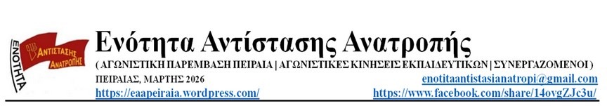 Είναι ολοφάνερο ότι κυβέρνηση, υπουργείο και κρατικός-διοικητικός μηχανισμός βρίσκονται σε κοινό βηματισμό για το προχώρημα της άγριας ταξικής επίθεσης στην εκπαίδευση με κάθε μέσο. Παλιά και νέα αντιεκπαιδευτικά μέτρα συνοδεύονται με παλιές και νέες διώξεις (πειθαρχικές και ποινικές), με στόχο να καμφθούν οι αντιστάσεις. Με το γνωστό και μονότονα επαναλαμβανόμενο κατηγορητήριο που διαθέτει το οπλοστάσιο του νέου αυταρχικού -φασιστικού τύπου- πειθαρχικού και ποινικού πλαισίου. Στην συγκεκριμένη περίπτωση, στα «κλασικά» περί «διατάραξης ομαλής λειτουργίας δημόσιας υπηρεσίας» και τις «φωνασκίες» προστέθηκαν (για λόγους… δραματοποίησης, μάλλον), διάφορα ευφάνταστα περί «βίαιης εισβολής» και «φθορές σε κλειδωμένη σιδερένια πόρτα», για «άσκηση σωματικής βίας με κίνδυνο ζωής ή βαριάς σωματικής βλάβης»! Κι όλα αυτά στο πλαίσιο δυναμικών και μαζικών κινητοποιήσεων, όπου τα συνθήματα έγιναν «φωνασκίες» και η συλλογική δράση ποινικοποιείται σαν «από κοινού ενέργειες και με κοινό δόλο»!