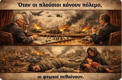 “Όταν οι πλούσιοι κάνουν πόλεμο, οι φτωχοί πεθαίνουν” έγραψε ο Σαρτρ για να υπογραμμίσει την κοινωνική αδικία, όπου οι ισχυροί αποφασίζουν για τους πολέμους που το κόστος σε ζωές το πληρώνει ο φτωχός λαός…