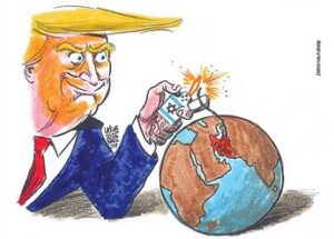 Στη σειρά κατά ριπάς: Γενοκτονία των Παλαιστινίων. Δολοφονία του Λιβανέζου πολιτικού και θρησκευτικού ηγέτη Νασράλα. Δολοφονία του Χανίγιε σε ξενοδοχείο της Τεχεράνης. Επέμβαση και απαγωγή του προέδρου Μαδούρο και περιφορά του σαν λάφυρο πολέμου. Εξόντωση της ιρανικής θρησκευτικής, πολιτικής, στρατιωτικής ηγεσίας και διαφήμιση των ικανοτήτων που τους δίνει η Τεχνητή Νοημοσύνη, οι δορυφόροι, τα οπλικά συστήματα, οι πραχτόρικες διαβρώσεις. Άλλος τύπος πολέμου… Στραγγαλισμός της Κούβας. Ο Τραμπ τη θεωρεί παιχνιδάκι του: «Όπου να ’ναι πέφτει, δεν ανησυχώ καθόλου». Αποκλεισμός της από παντού. Χωρίς ηλεκτρικό, χωρίς φάρμακα, χωρίς τρόφιμα.