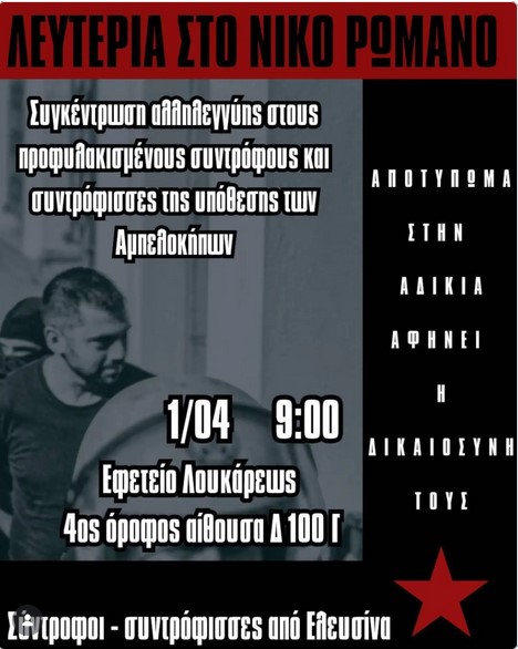 Η δίκη της υπόθεσης των Αμπελοκήπων, έρχεται να προστεθεί σε μια σειρά από δίκες στις οποίες μοιάζει να διακυβεύεται κάτι μεγαλύτερο από αθώους κι ενόχους. Φαίνεται μικρότερης εμβέλειας, όμως έτσι όπως προσωποποιείται στον Ρωμανό (χωρίς να εξαντλείται σε εκείνον) έχει κι αυτή τη σημασία της για το δημόσιο συμφέρον, μαζί με τις δίκες των Τεμπών, του ΟΠΕΚΕΠΕ, των υποκλοπών και φυσικά της Χρυσής Αυγής που ολοκληρώθηκε πριν λίγες εβδομάδες.