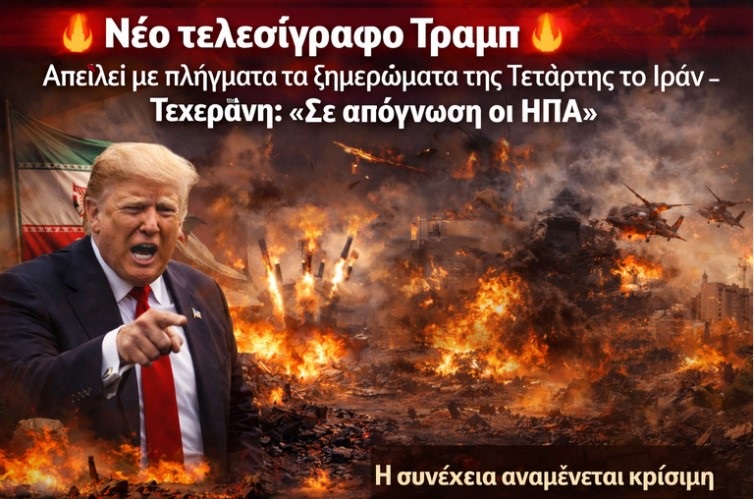 Τραμπ: Απειλεί με πλήγματα τα ξημερώματα της Τετάρτης το Ιράν – Τεχεράνη: «Σε απόγνωση οι ΗΠΑ»