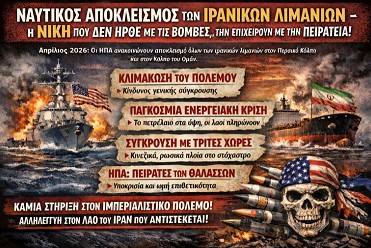 • Καμία στήριξη στον ιμπεριαλιστικό πόλεμο ΗΠΑ–ΝΑΤΟ–Ισραήλ