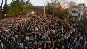 Κατάμεστος ο χώρος, χιλιάδες κόσμου «αγκάλιασαν» το θυσιαστήριο της Λευτεριάς. Αυτή τη γη που εκπέμπει ιστορία ηρωική, περήφανη, ζωής κόντρα στο θάνατο. Απ’ άκρη σ’ άκρη, σε όλο το τεράστιο πάρκο απλώνεται ο κόσμος που παρακολουθεί με προσοχή την ομιλία του ΓΓ της ΚΕ του ΚΚΕ, πολλοί απ’ αυτούς εκατοντάδες μέτρα μακριά από την σκηνή, από τις γιγαντοοθόνες που έχουν στηθεί. Όλα τα βλέμματα καρφωμένα στη σκηνή και στις οθόνες, τα αυτιά ανοιχτά και προσηλωμένα στην ομιλία.