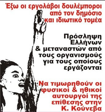 «Δεν γινόμαστε ουρά των γραφειοκρατών που τα βρίσκουν διαρκώς με την εργοδοσία και το κράτος, μοιράζουν σαν “κόμματα εξουσίας” τα προνόμια της ταξικής συνεργασίας κι ενώ έχουν το θράσος να μιλούν στο όνομά μας, στο όνομα της εργατικής τάξης, μαχαιρώνουν πισώπλατα κάθε αγώνα μας. Ούτε θα χαριστούμε και σε κείνους που θέλουν μονίμως να μας καπελώνουν, να μετατρέπουν τους αγώνες σε ψήφους κι όταν ξεσπά ένας Δεκέμβρης πηγαίνουν από την αντίπερα όχθη του ποταμιού… Οι εργάτες πρέπει να βαδίσουν και να παλέψουν ενάντια στα αφεντικά και χωρίς τους ψεύτικους μεσολαβητές και καλοθελητές της κάθε γραφειοκρατίας. Η χειραφέτηση της εργατικής τάξης είναι έργο της ίδιας της εργατικής τάξης!»