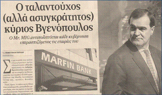 Μιλούσαμε εκεί στην αγιογραφία του μεγαλοκαπιταλιστή Βγενόπουλου που είχε κάνει ο Ζούγκλας και στοιχηματίζαμε ότι την Κυριακή θα έχει στην φυλλάδα του ολοσέλιδες διαφημίσεις της MIG.